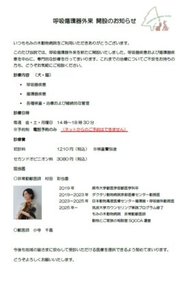 いつももみの木動物病院をご利用いただきありがとうございます。